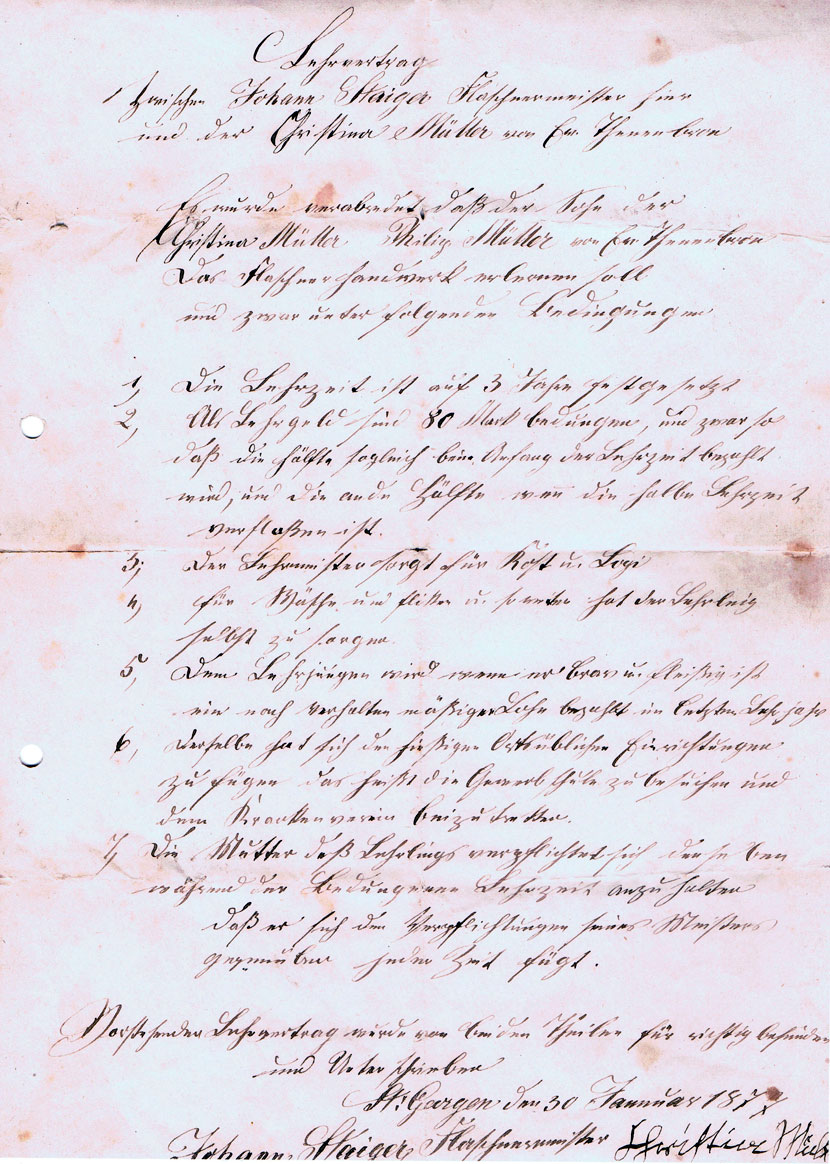 Ein Lehrvertrag aus dem Ende der 1870er Jahre zeigt, dass 80 Mark Lehrgeld gezahlt werden musste, wenn man als Flaschner eine Lehre machen wollte.