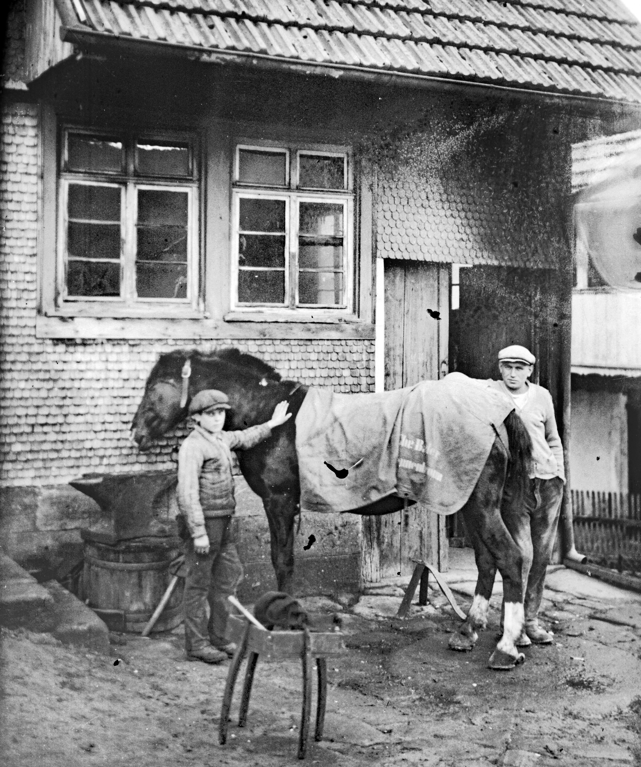 Manchmal benötige ich auch neue Schuhe. Dann gehe ich zum Schmiedjohann, der ein paar Häuser oberhalb von uns wohnt.