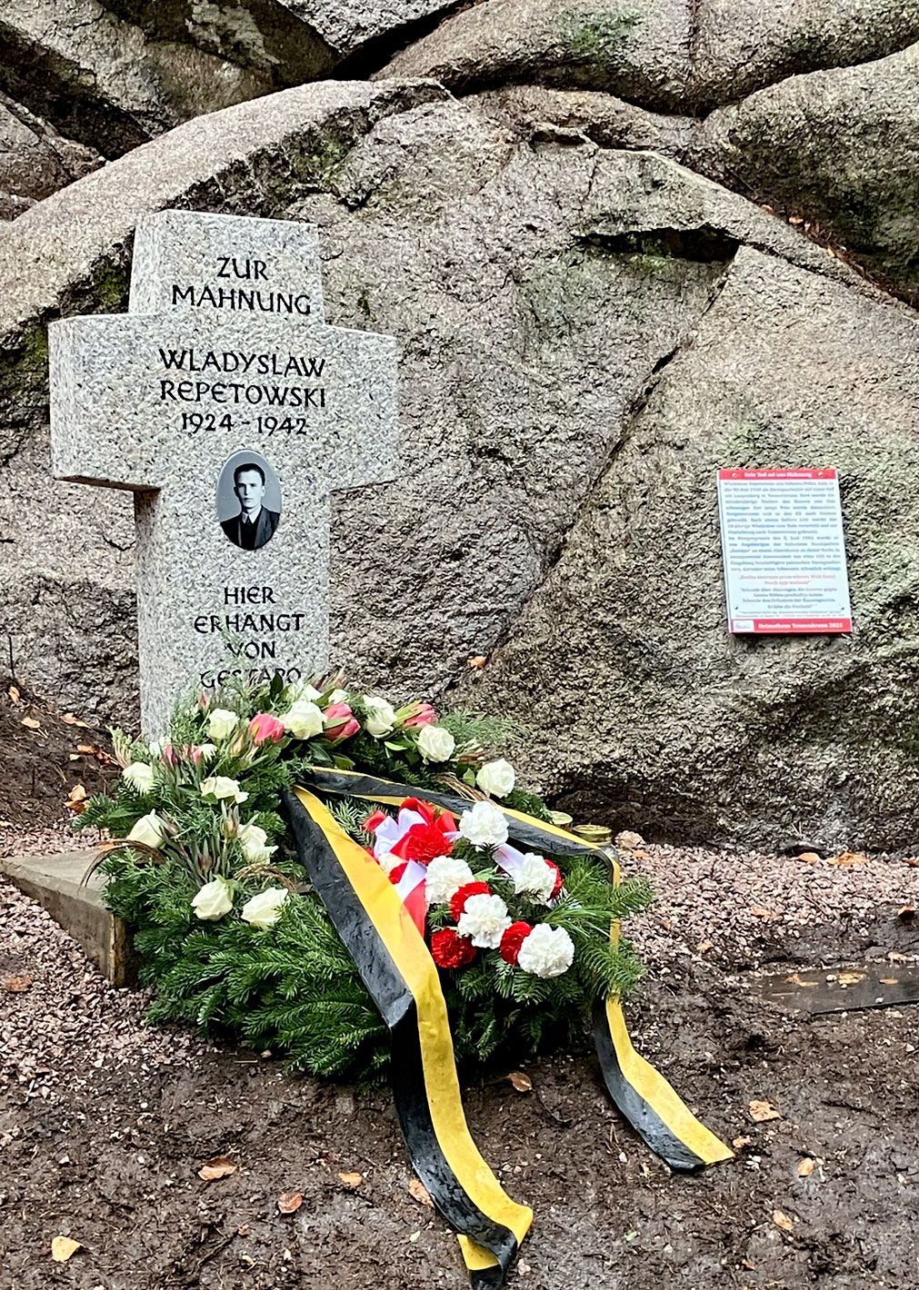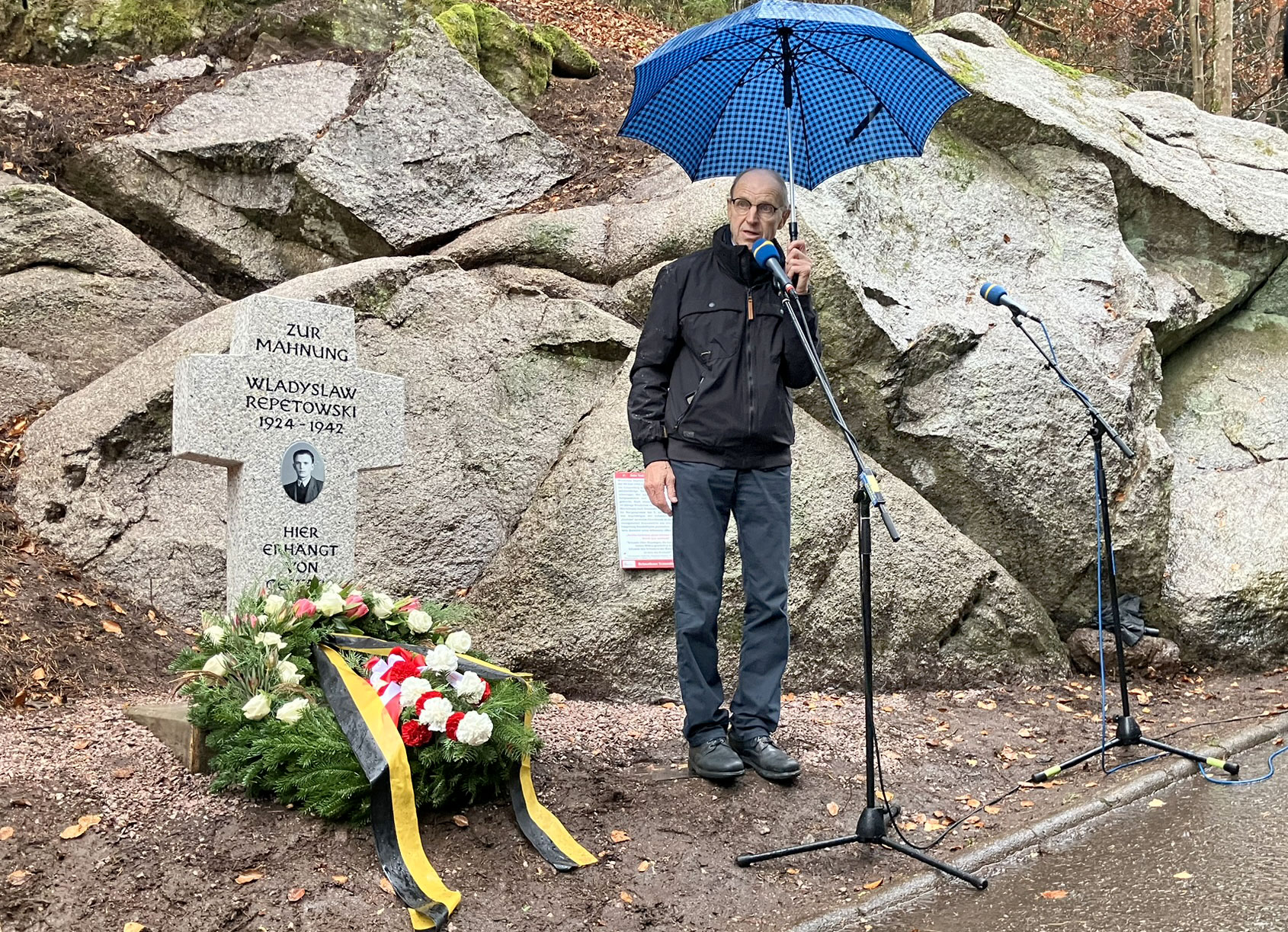 Die Hintergründe des Geschehens in der NS-Zeit in Tennenbronn sind bereits ausführlich beschrieben worden: Wladyslaw Repetowski aus Iwkowa/Polen kam in der NS-Zeit 1940 als Zwangsarbeiter auf einen Hof am Langenberg in Tennenbronn. Dort wurde die minderjährige Tochter des Bauern, Agnes Kunz, von ihm schwanger. Der junge Pole wurde festgenommen und in das KZ nach Dachau gebracht. Nach einem halben Jahr wurde Wladyslaw zum Tode verurteilt und zur Hinrichtung zurück nach Tennenbronn gebracht.