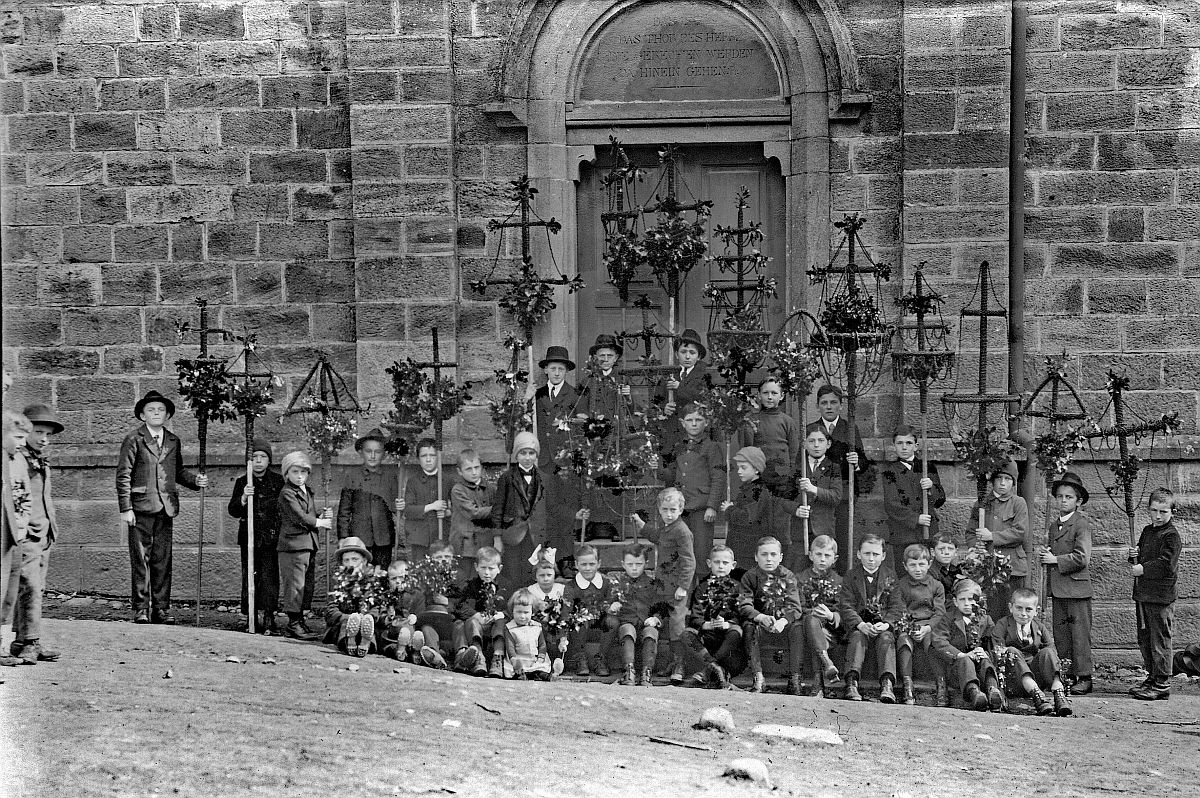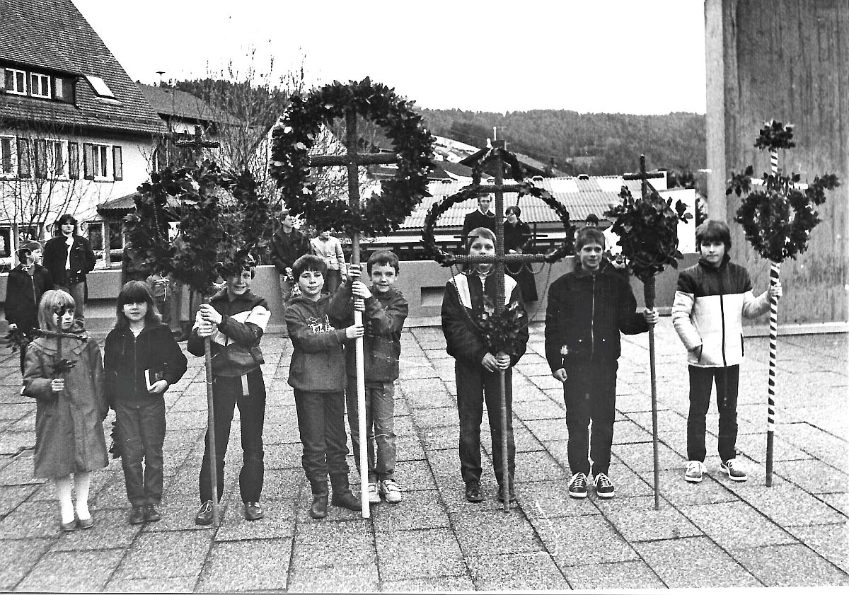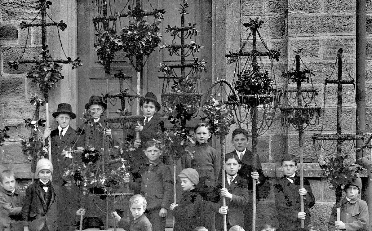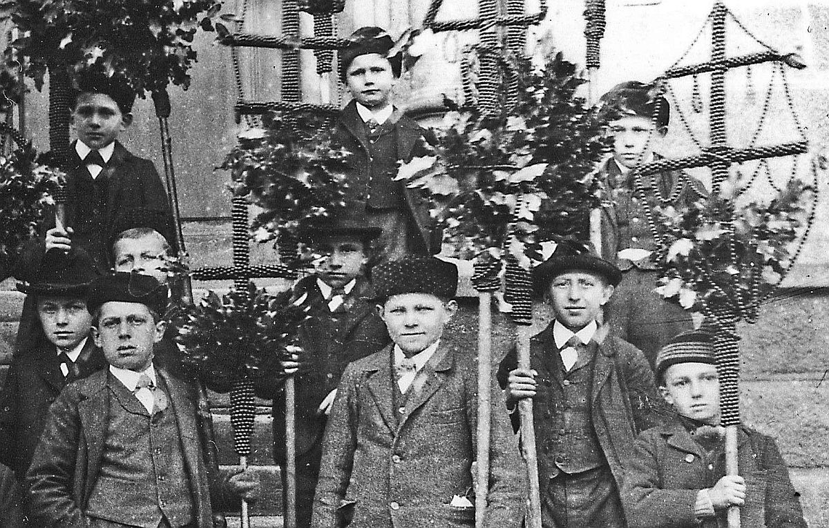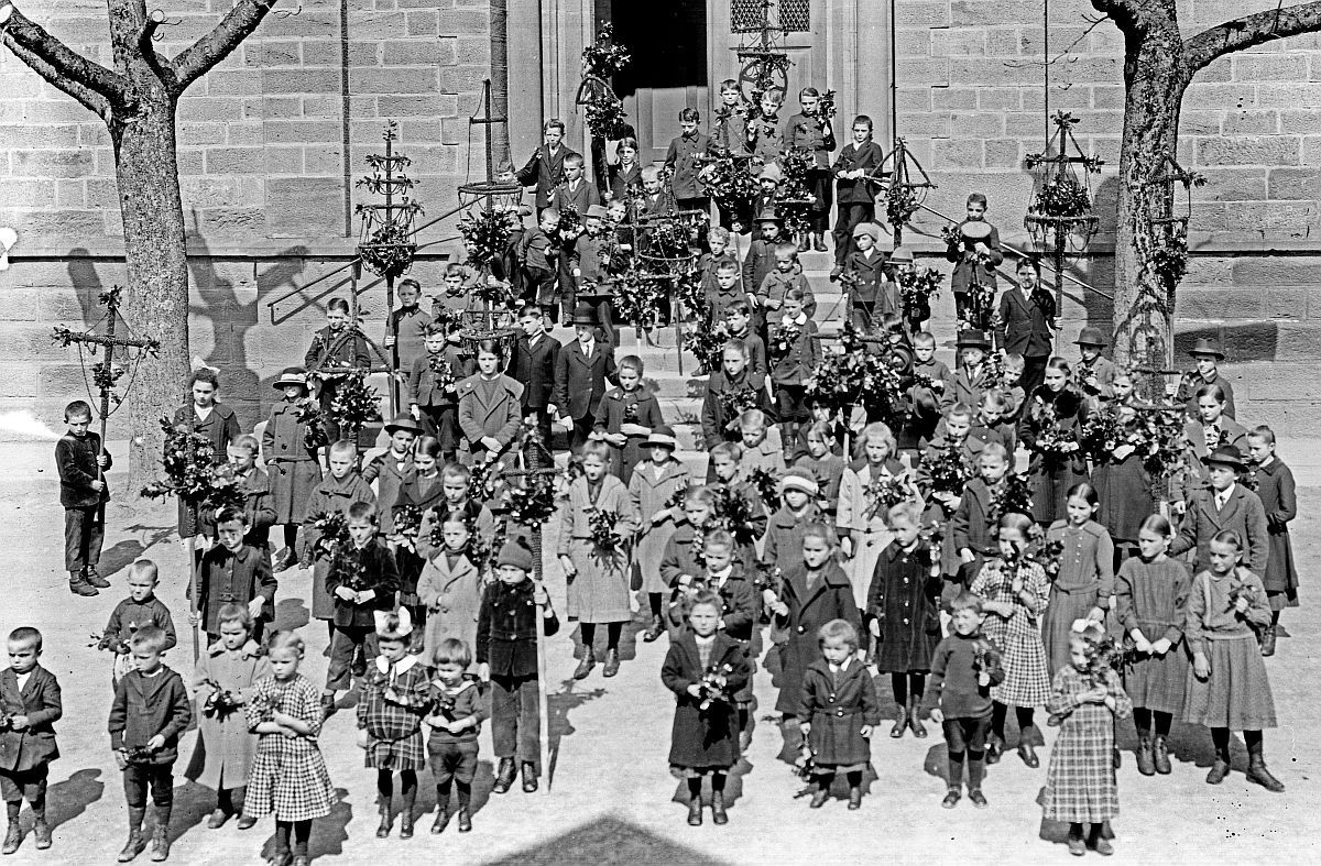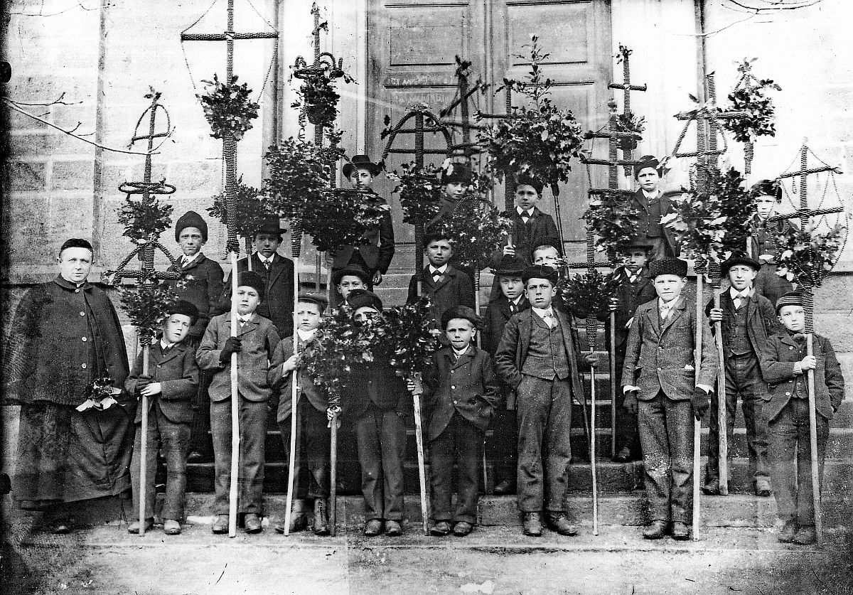 An Palmsonntag werden in der Katholischen Kirche Palmbüschel gesegnet. Es ist das Gedenken an den Einzug von Jesus in Jerusalem, wo die Leute seinen Weg mit Palmzweigen schmückten.